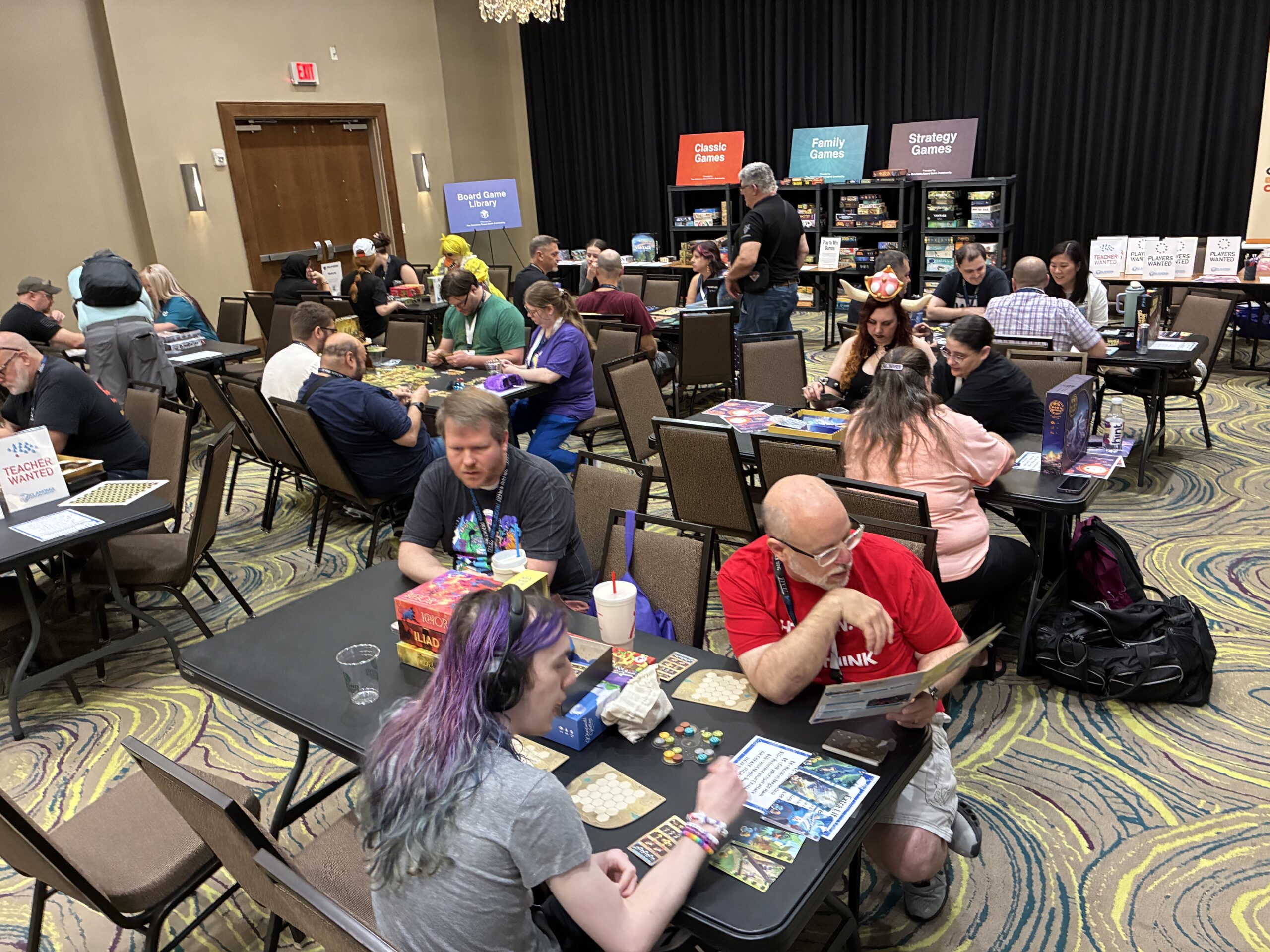 MiracleCon is a charity convention supporting Children’s Miracle Network hospitals. The Oklahoma Board Game Community takes a major role in helping organize the event, providing a library of 150+ board games, plus numerous volunteers to run an extensive board game area.