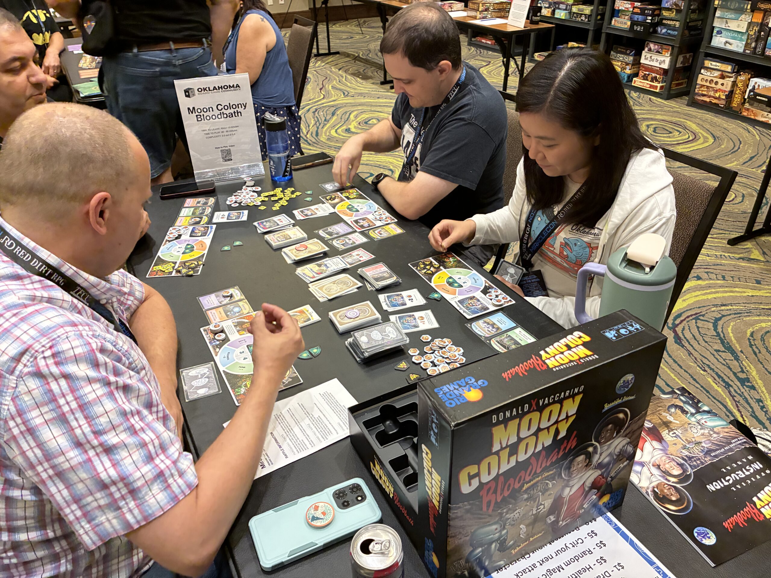 The Future Society of Central Oklahoma, a 501(c)3 charity that promotes arts, literature, and the sciences through the lens of pop culture, runs SoonerCon every June. At SoonerCon, the Oklahoma Board Game Community provides a library of free to play board games, plus volunteers to organize and help teach.
